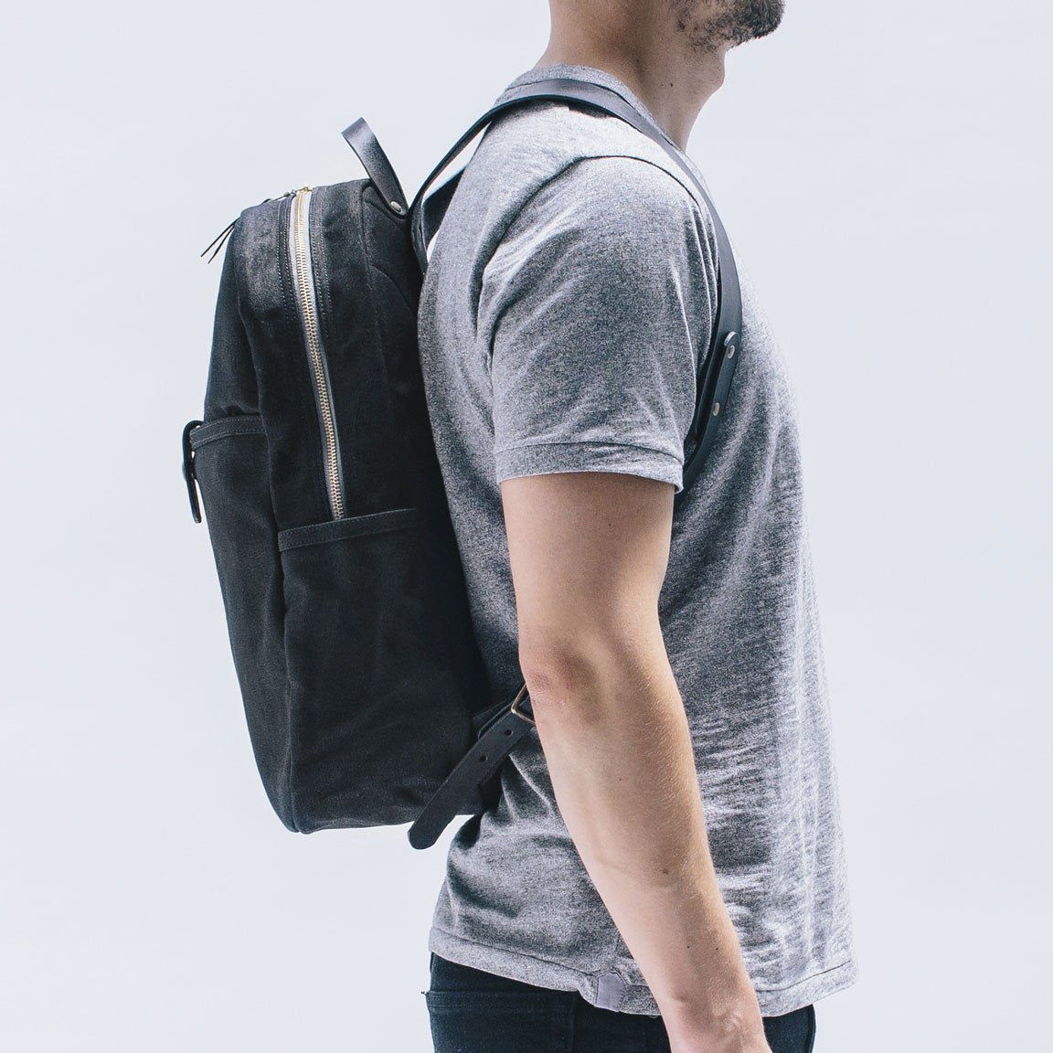 Black Waxed Canvas & Black Leather